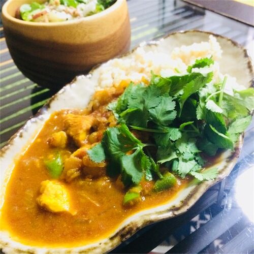 朝、有頭エビを殻ごと炒めたところに 白ワインをぶちこみアメリケーヌソースもどきを作ってたのを使って エビカレー! エビの風味 120%! めちゃめちゃ美味し! 青とうがらしで辛いけど美味い! なたんちびるかも。。
